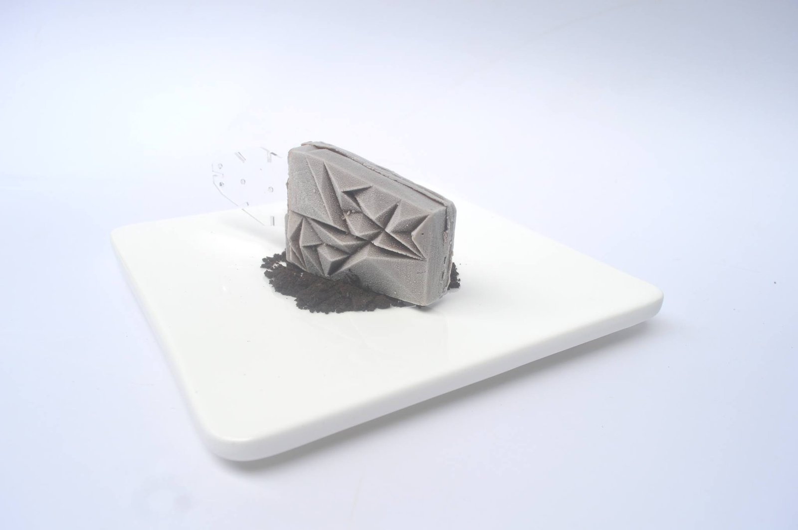 El material es helado. El proyecto implica no sólo crear una forma con él, sino meterme de lleno en la gastronomía. Me atreví a experimentar y desarrollé una variada gama de helados de manufactura artesanal, con sabores locales y gourmets. La textura esta dividida en dos partes: primero debemos observar su morfología, que estimula el sentido del tacto, en tanto es una superficie yuxtapuesta, donde la geometría crea un plano la cual invita a “jugar” con él; luego está la cremosidad resultante de los diferentes procesos con que elabore el helado.