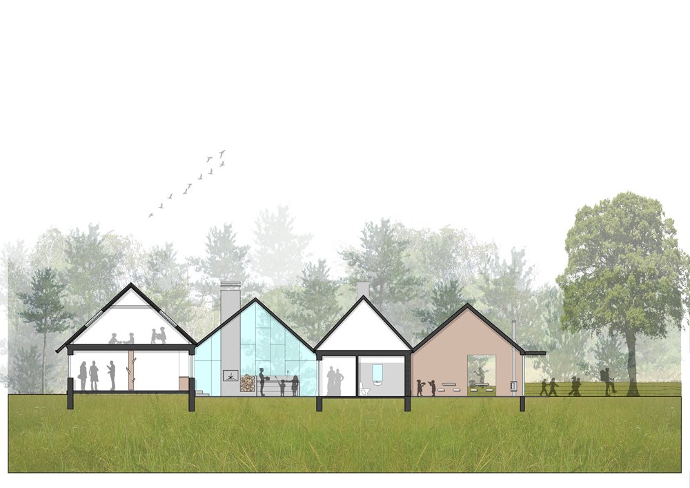 Nøjkærhus es obra del estudio Lumo Arkitekter. El objetivo del proyecto, al igual que en Shelters by the Sea, es facilitar el ocio al aire libre, disfrutando de los bosques de Dinamarca. Nøjkærhus se encuentra en Jutland, cerca de Silkeberg, rodeada de un paisaje que se caracteriza por extensos bosques y lagos. El edificio original, situado en un pequeño claro en medio del bosque, constaba de dos bloques que pertenecían a la guarda forestal. Tras la remodelación llevada a cabo por Lumo Arkitekter, los dos módulos se han duplicado, dando lugar a un edificio compuesto por cuatro casas: Main House, Glass House, Stable House y Log House. Pese a que cada una cuenta con una identidad arquitectónica diferenciada, en conjunto, las cuatro casas crean un enfoque arquitectónico armónico, con una escala aproximada a la humana, y facilitando la relación entre los espacios interiores y exteriores. La elección de los materiales de construcción es fruto del deseo de lograr una expresión nórdica y robusta, a la vez que luminosa. Los cuatro módulos son funcionales y tienen potencial para albergar una amplia gama de actividades durante todo el día y a lo largo de todo el año. Una composición arquitectónica con una expresión distintiva y que enfatiza la función original del proyecto como centro activo para el movimiento, el aprendizaje y la socialización en medio de la naturaleza.