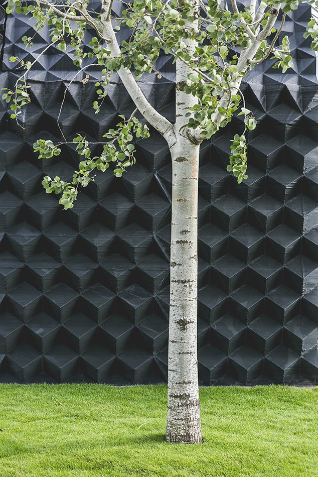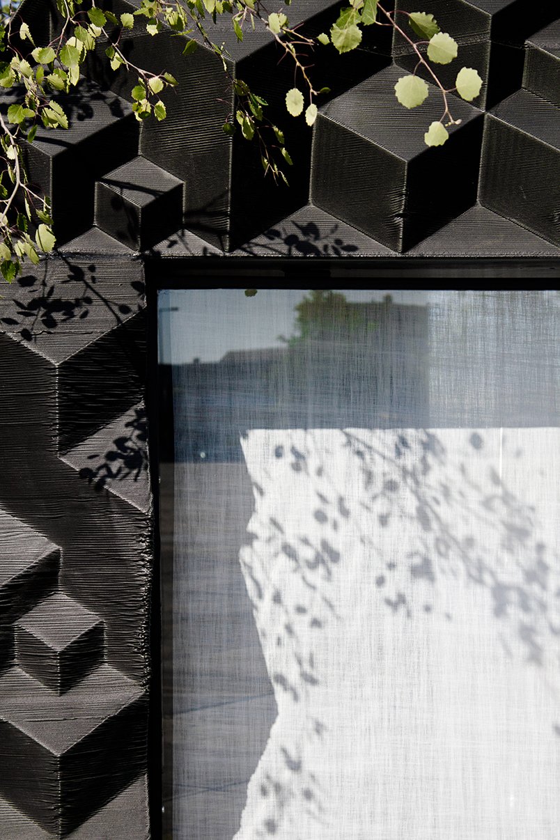 Están realizadas con un bioplástico apto para ser triturado en su totalidad y ser utilizado nuevamente. Las relaciones entre el interior y el exterior juegan un papel fundamental en el diseño: para optimizar el escaso espacio disponible y como recurso estético. El diseño incluye una bañera escultural para disponer al aire libre, que también se desarrolla a través de la impresión en 3D.