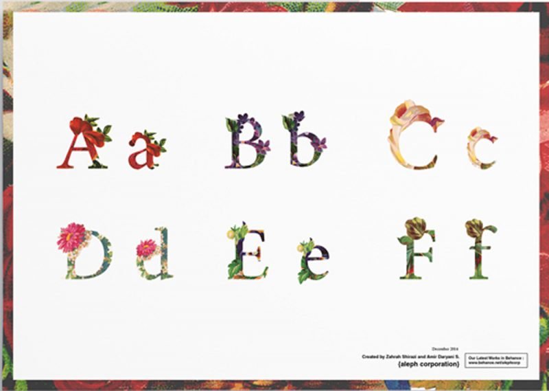 La naturaleza sirve de inspiración a esta fuente, de carácter fuertemente ornamental, para la cual el estudio de diseño israelí con sede en Teherán, aleph corporation, ha utilizado ilustraciones de otros autores. Compuesta por archivos .tiff, puede ser utilizada en trabajos comerciales o personales, y está además disponible para idiomas como el alemán. Su redistribución a través de cualquier web o plataforma queda completamente prohibida. Enlace de descarga.