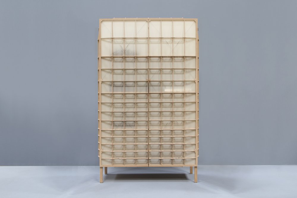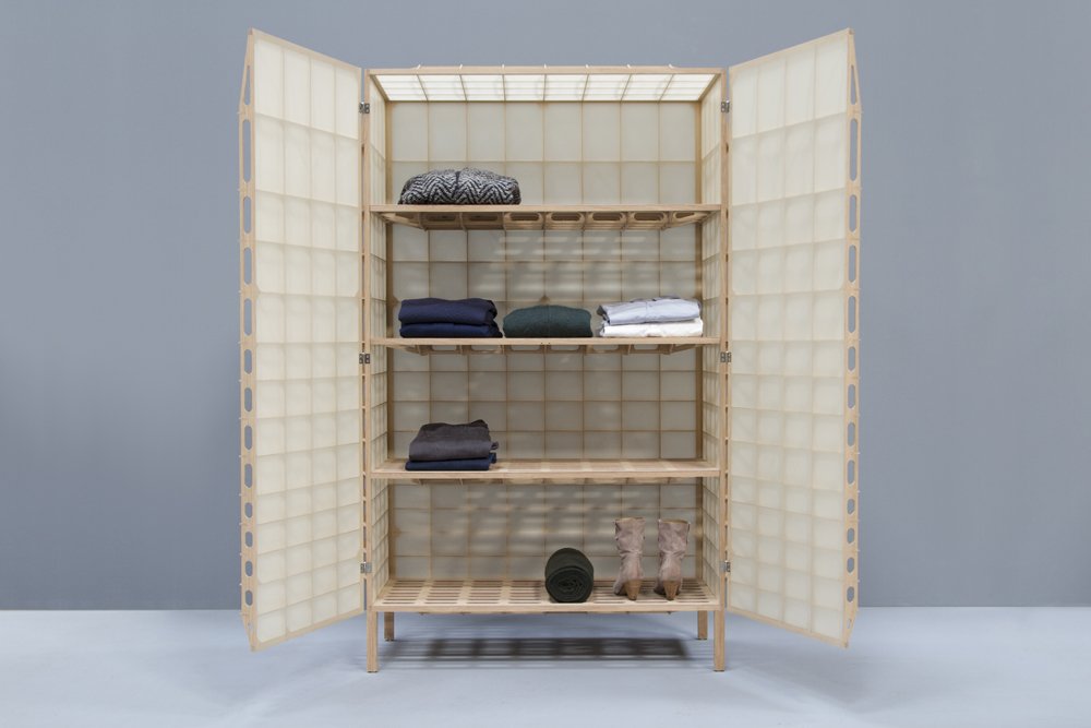 Los armarios suelen ser muebles robustos y pesados, aptos para almacenar un peso muy superior al suyo. Airframe 01 tan solo pesa 18,5 kilogramos. El estudio de diseño holandés Mieke Meijer, creador del material NewspaperWood, asumió el reto que la empresa de materiales de construcción Baars & Bloemhoff le encargó para una exposición en la que participaba.