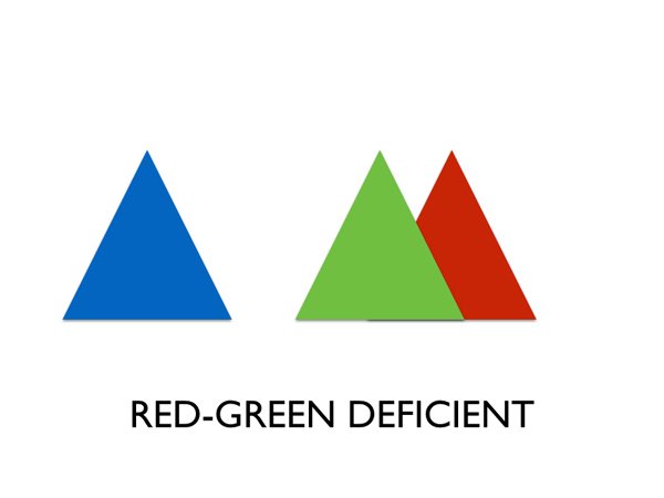 La percepción normal del color se basa en la luz que entra en el ojo, activándose los tres fotorreceptores sensibles a las diferentes porciones del espectro visible: azul, verde y rojo —que responden con longitudes de onda en forma de campana de Gauss—. Normalmente, los fotoreceptores verdes y rojos se superponen de manera significativa, pero en los daltónicos esa superposición es mayor, llegando, en las formas más acusadas, a coincidir.