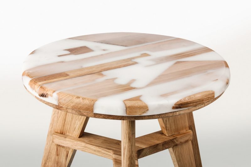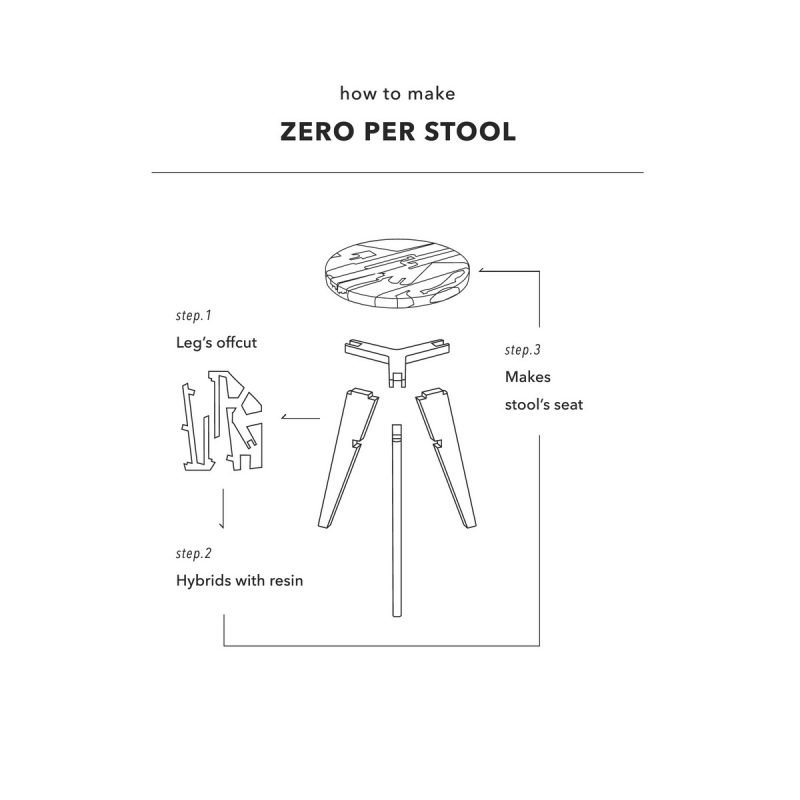 Hattern, estudio de diseño con base en Seúl, ha diseñado Zero per Stool, un taburete realizado gracias a la combinación de madera up-cicling (piezas en desuso a las cuales se les da una nueva vida) y resina epoxi. Bajo la premisa: cómo hacer un asiento de una manera diferente, los integrantes del estudio han trabajado mediante la técnica de “madera híbrida”, en este caso, solidificando en un molde resina curada junto a las piezas de madera. El resultado de esta combinación da forma al tablero del taburete, el cual ofrece, además, juego visual gracias a la composición que se genera entre las piezas de madera y la resina traslúcida de diferentes tonalidades. La base del asiento está compuesta por patas de madera de roble blanco. Para sus diseñadores, ambas partes dan lugar a un nuevo diseño que, entre otros aspectos, destaca por su belleza.