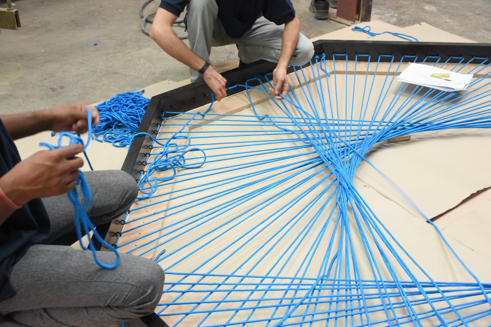 Con motivo de la inauguración de la Dubai Design Week, que ha tenido lugar en la ciudad árabe del 26 al 31 de octubre de 2015, la diseñadora multidisciplinar Aljoud Lootah ha presentado Yaroof, una instalación geométrica inspirada en un tipo de pesca de orilla tradicional. La obra está formada por cuatro marcos de forma octagonal y fabricados en madera negra de teca; para cada marco la creativa árabe ha diseñado una red cuyo patrón se inspira en los decorativos arabescos y que está tejida utilizando mil metros de cuerda de nailon, el mismo material que emplean los pescadores del lugar para formar sus redes. Como en la mayoría de sus instalaciones, Aljoud Lootah experimenta con las formas, los motivos y los materiales de la tradición árabe y los reinterpreta a la luz de elementos y conceptos del diseño contemporáneo. Yaroof ha sido encargada por la empresa Meraas Holdings y está ubicada a orillas del mar, frente a los rascacielos del Jumeirah Beach Residence.